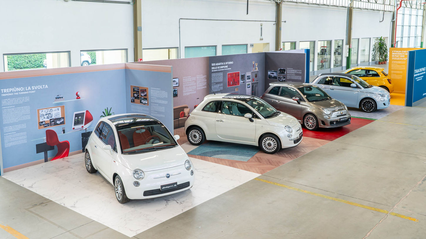 Dal primo modello del 1957 alla nuova 500 Hybrid, il visitatore percorre la storia della Fiat 500.