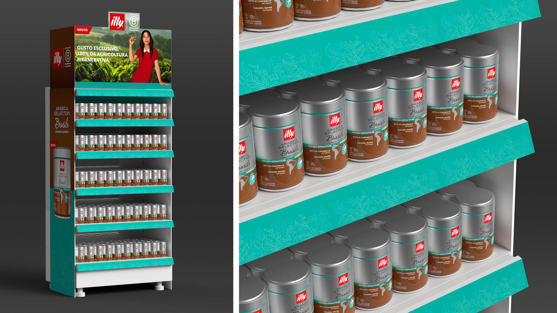 illy Caffè, per il lancio del primo caffè prodotto al 100% con agricoltura rigenerativa, ci ha affidato lo sviluppo della creatività e la produzione dei materiali POP.